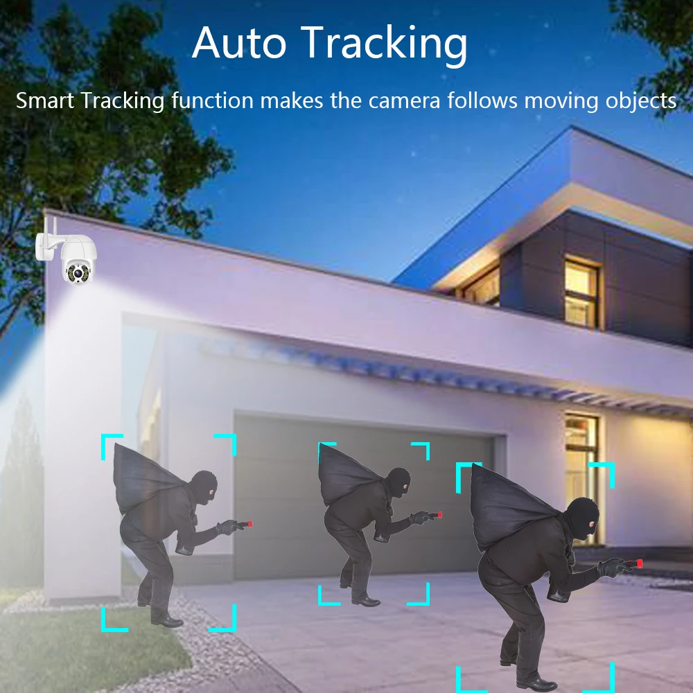 بعد قفل الهدف ، ستقوم الكاميرا بضبط دوران المقلاة تلقائيًا ، وتتبع الأجسام المتحركة ، والسيارات ، والحيوانات الأليفة ، والإنسان ، وإشعارات التنبيهات بالدفع إلى هاتفك الذكي.