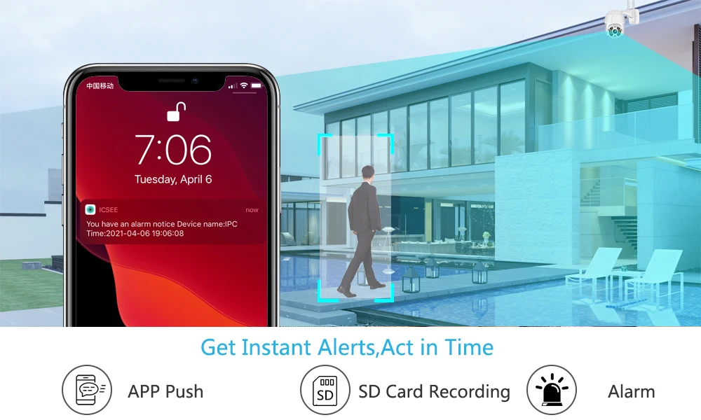 منظمة العفو الدولية الإنسان كشف التنبيهالعثور على الأهداف البشرية بسرعة وإرسال إشعار على الفور إلى هاتفك ، مما يتيح لك رؤية ما يحدث في أي مكان. إنها فقط تستكشف الشكل البشري ولن تؤدي إلى أشياء زائفة مثل السيارات والأشجار.